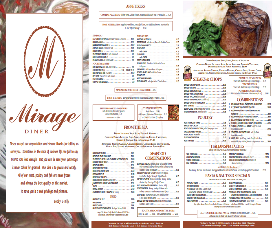 Sign Up Today - It's Free! Join the Mirage Diner Club for special promotions, giveaways, delicious recipes and more.